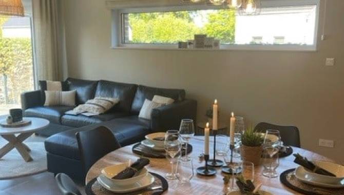 Living room, dining room, fully equipped kitchen with south-facing terrace.