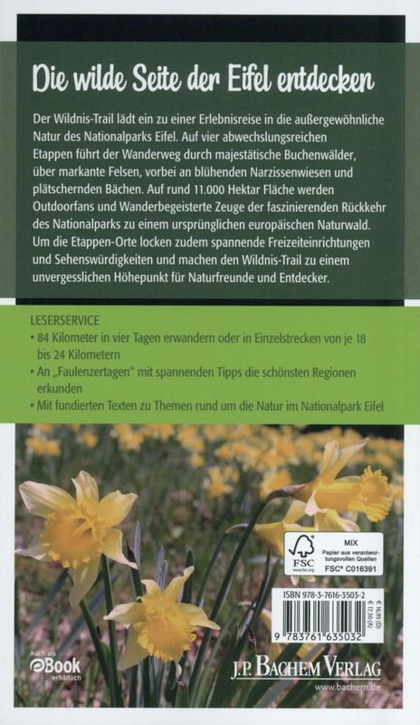 Neben den vier Tagesetappen der Wildnis-Trail-Wanderung quer durch den Nationalpark Eifel beschreibt der offizielle Wanderführer die Natur am Wegesrand und Sehenswürdigkeiten in der Umgebung. Es erwarten Sie 4 Tages-Etappen zwischen 18 und 24 Kilometern.